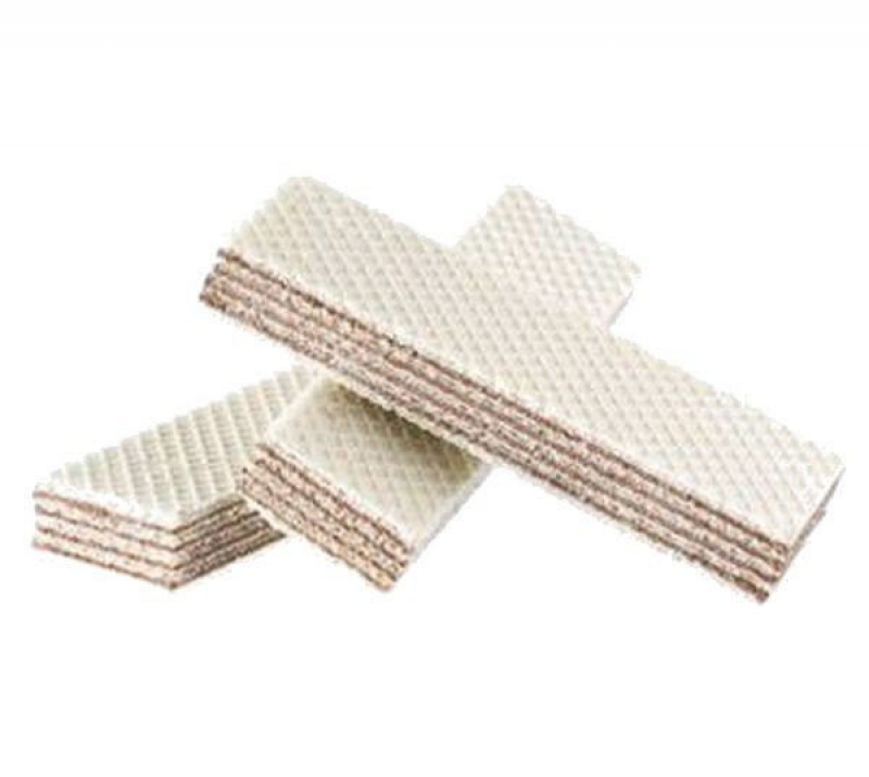 Опис: Вафлі з начинкою із смаком шоколаду. Вафельні листи білого кольору.